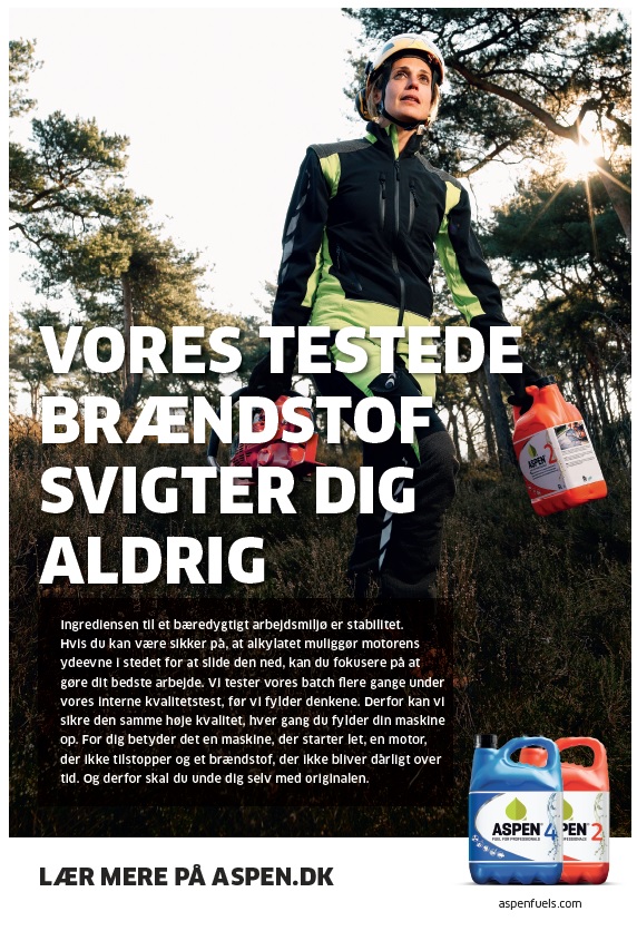 Aspen 4 miljø / Alkylat benzin et effektivt brændstof til forskellige typer af firetaktsmotorer. Alkylatbenzin er udviklet i tæt samarbejde med professionelle brugere for at give mindst mulig miljøpåvirkning og et betydeligt bedre arbejdsmiljø.